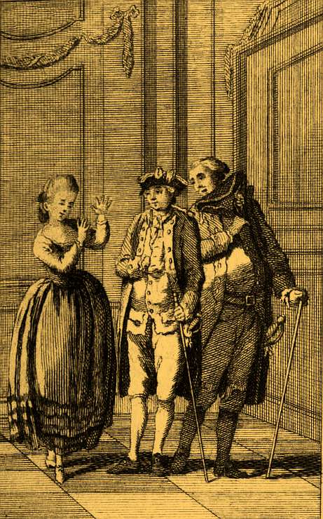 2. Minna leads Tellheim to her uncle and guardian, Count von Bruchsal.